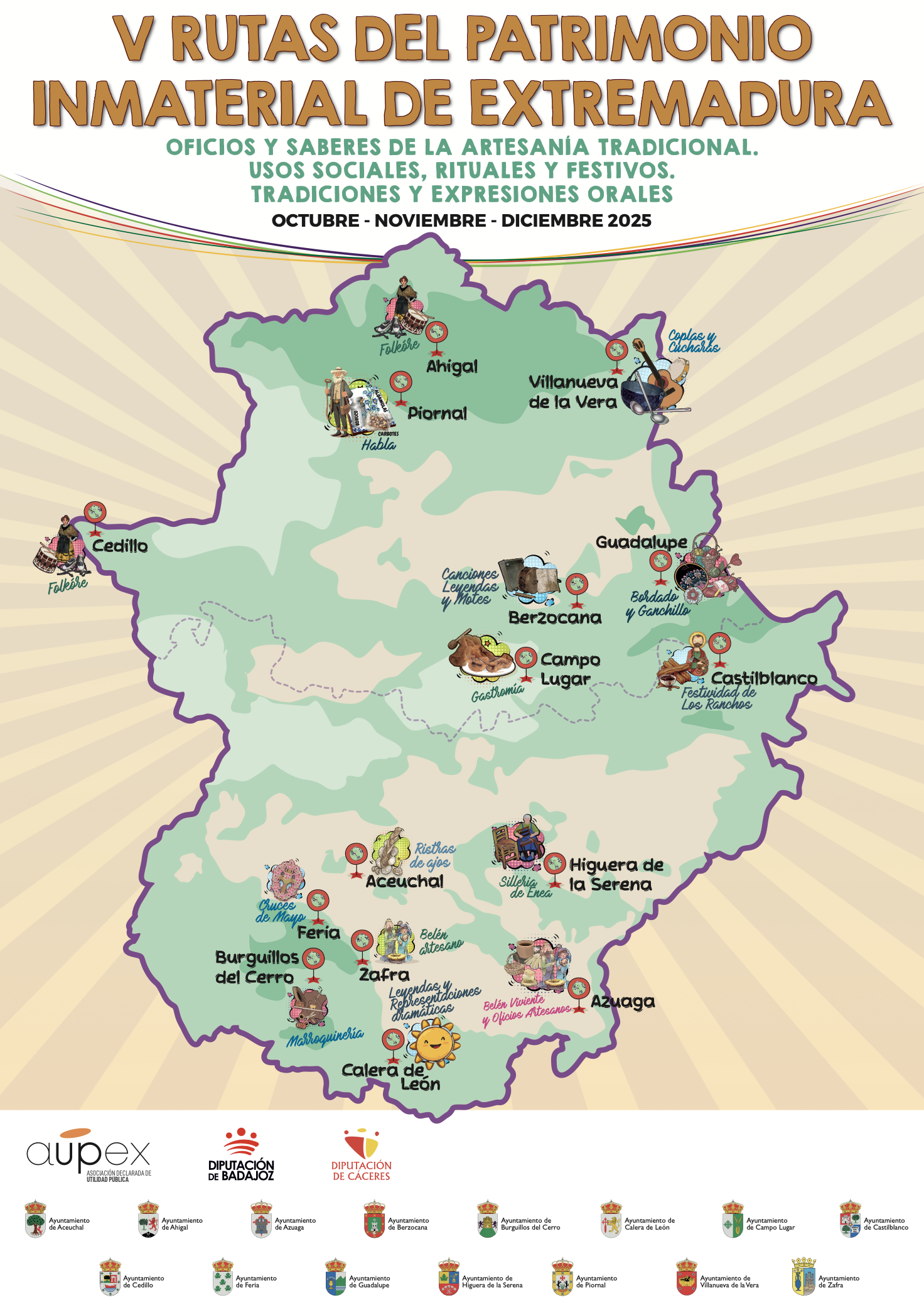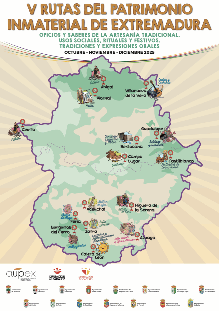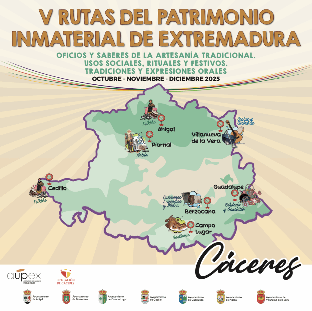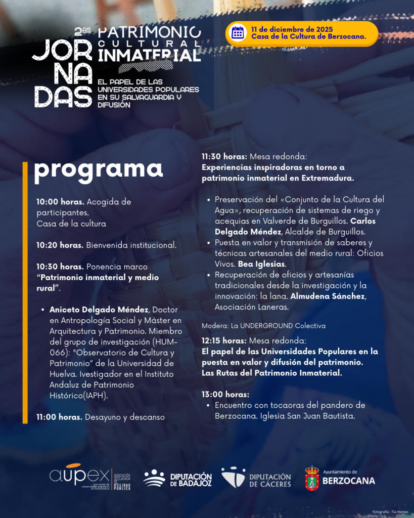 Se trataron de una jornada técnica que se desarrolló en el marco del programa “Contribución a la puesta en valor y difusión del Patrimonio cultural inmaterial de Extremadura”, que gestiona AUPEX con la colaboración de la Diputación provincial de Badajoz desde 2021 y al que este año se suma también la Diputación provincial de Cáceres.